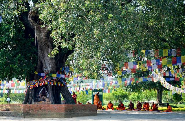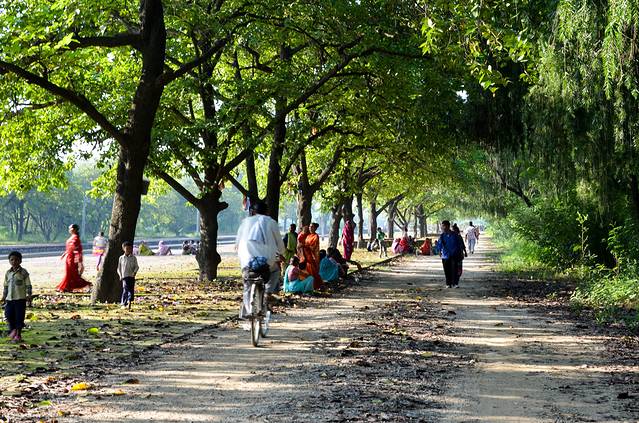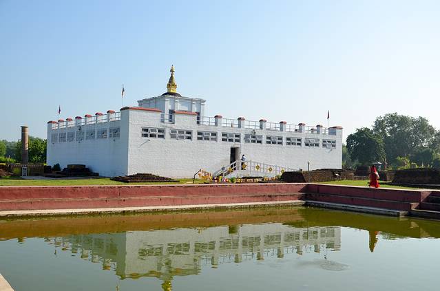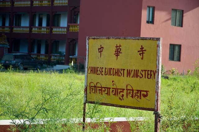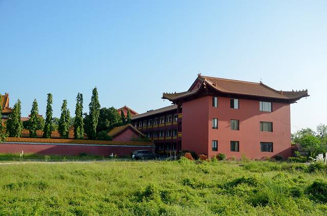 蓝比尼挨着印度,太热了。这里面有世界各地的寺庙,我们找中华寺。中华寺里不能住,叫我们去对面的韩国寺住。