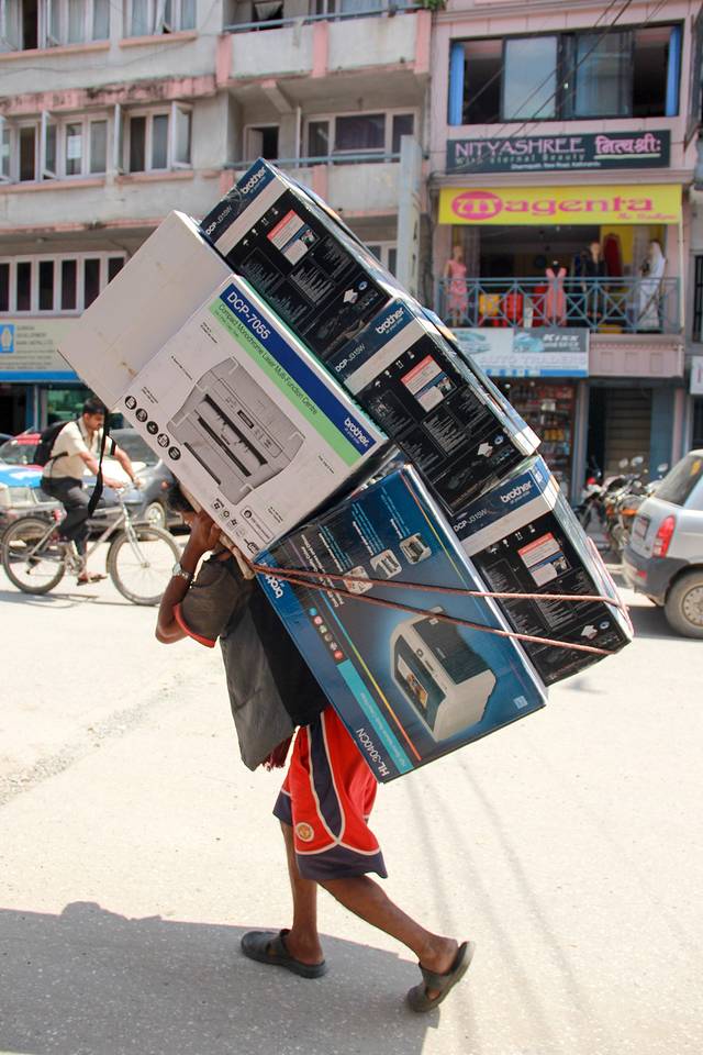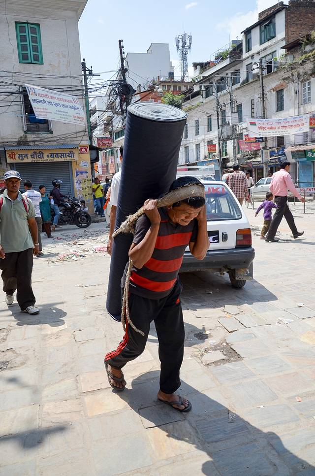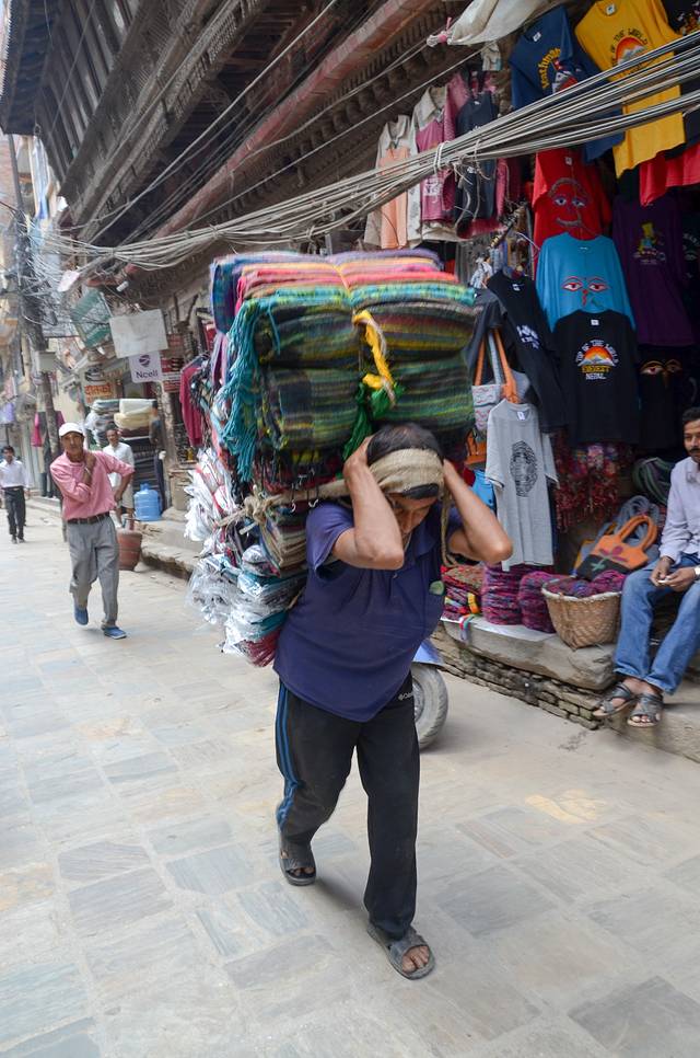 真不明白,当地人背东西不管多少都是绑在头上的。