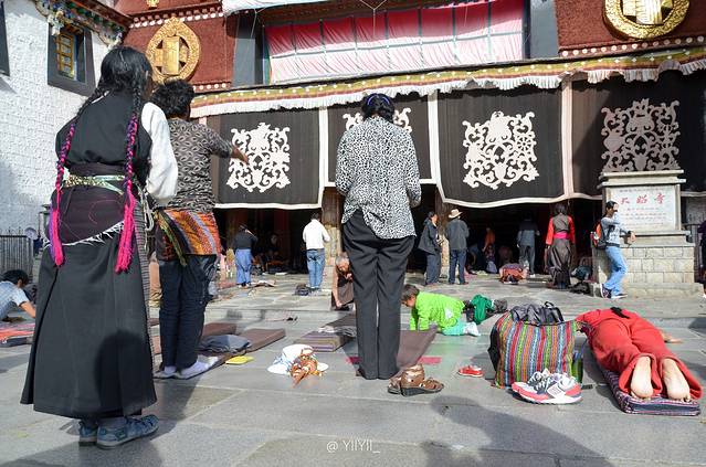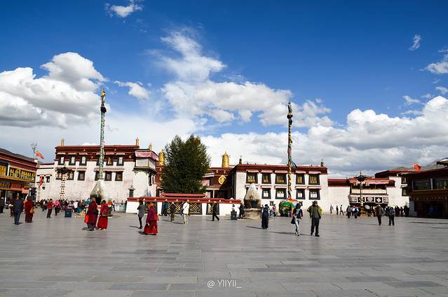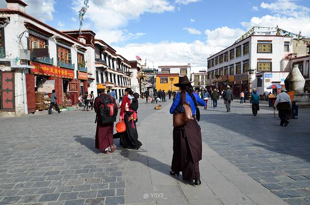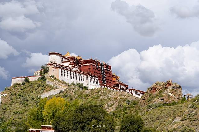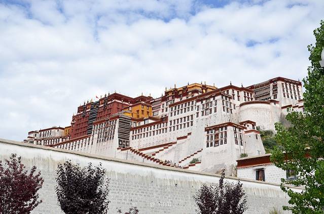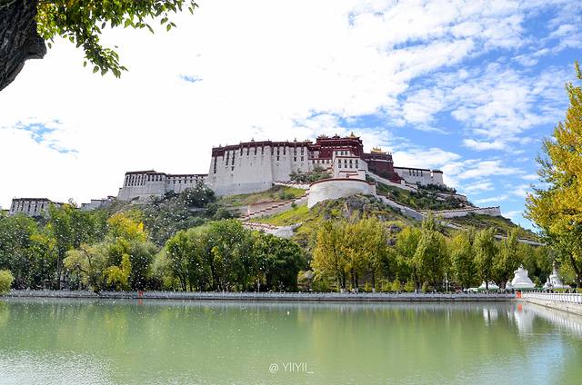 9月的拉萨,叶子已经开始黄了,中午依然很晒。到布达拉宫广场还要安检。