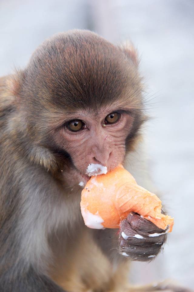 这猴子还吃冰激凌,估计又是从人手上抢的。小心猴庙的猴子。