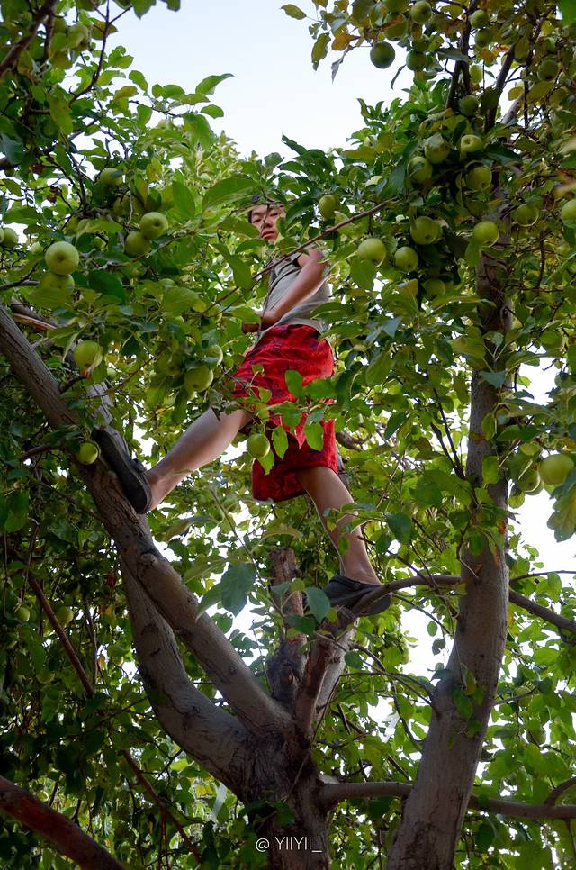 路边还有很多苹果树,还是不自觉的摘了几个吃