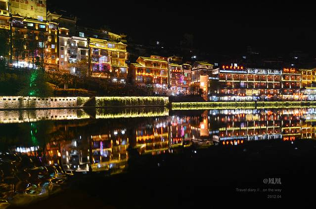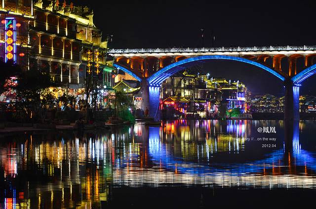 夜色里的凤凰还是会很迷人,只是酒吧街太过于吵闹,坐在江边看夜景或许更加的惬意。悲剧的事发生了,拍照的时候没看到江边的楼梯的台阶已经在水里了,我居然踩进去了,一只鞋子就彻底湿了