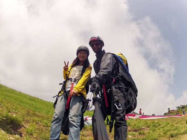 这是我的教练。这里很多教练都不是当地人,很多外国人在这里考的滑翔伞教练证,就留在这里当教练了。