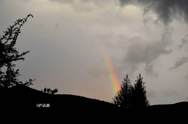 在走婚桥,我第一次看见彩虹,虽然只是一个不完整的彩虹,还是无比的激动。一天的时间,一会儿下雨,一会儿太阳,一会儿乌云,一会儿蓝天的,说变就变的天。彩虹过后就开始下雨,天空一半灰,一边蓝色,一边橙色,大自然诠释了最美的色彩。又是疯狂的赶回青旅
