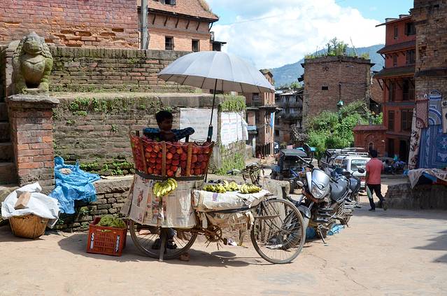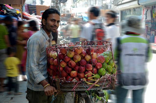 大街上有很多这样推车卖水果的,虽然尼泊尔是个不产水果的地方。