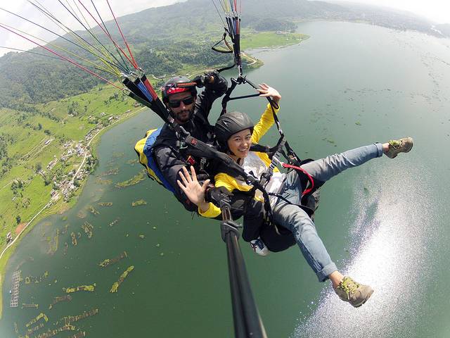 俯瞰费瓦湖太美了,最后教练还在天上来了一个大反转,太刺激了,把我差点转吐了。