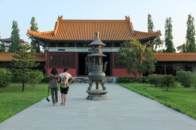 下午凉快下来才出门,到中华寺赶上他们的晚课,有45分钟。本来我不想上的,小伙伴都要上,我也跟着了。晚课是什么?听着僧人念经、敲木鱼,我们在后面跟着走。