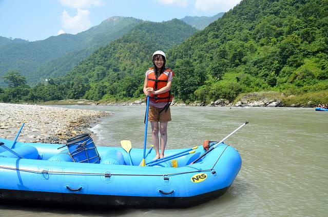 早上6点半就出发,有车到hotel接,送去坐旅游大巴,4个小时的车程到达漂流的地点,在加都和奇特旺之间。把行李放在那里,贵重物品带上船放箱子里。