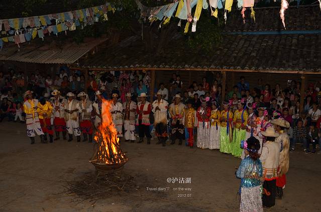 脑子里突然冒出了想搭顺风车的念头,否则只能走路过去,还有好远一段路,已经累瘫了。边走边搭车,抱着想试一试的念头,鼓足勇气终于伸出了手,可惜好几辆车过去了,还没有车停下来,只有一辆车过去时对我们说了什么,没听清。信心被浇灭了,还是继续走路吧。没走多远就有一辆反方向的车停下来了,司机说刚刚叫我们等一下怎么不等呢。原来他就是刚刚过去时说话的那辆车,司机叔叔说他们要先去刚刚我们过来的那边转一转再载我们过去,小落水离他们住的地方也不远。上了车,又去转悠了一下,就送我们到了小落水,晚上还带我们去看了篝火晚会。感谢