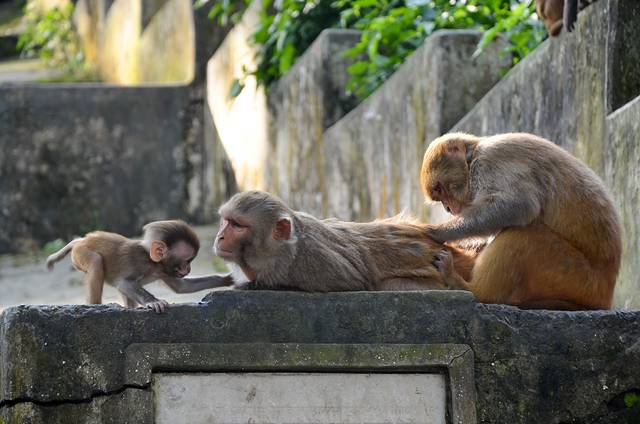 猴庙当然少不了猴子,猴子太多了,大猴小猴老猴都有,而且还给人抢吃的。玲珑和阿狼一人买了一根黄瓜吃,居然直接被猴子从手上抢走了。
