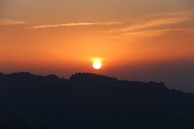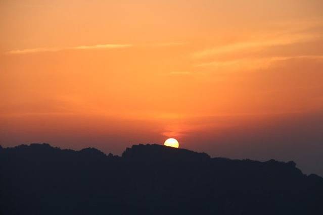 在等待中,太阳慢慢升起来,随之整个天空都变红了,非常壮美。