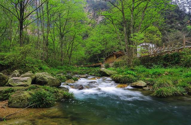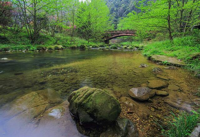 金鞭溪溪水清澈明亮,让人一看就忍不住想去触摸和亲近。