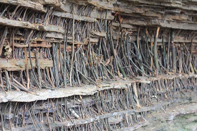 由很多小树枝支撑着,也许是为了防止薄薄的石片坍塌掉下来