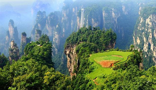 袁家界位于武陵源核心景区,与金鞭溪一衣带水,东接索溪峪,南眺鹞子寨,西望黄石寨,北靠天子山,从袁家界就可坐环保车去杨家界、天子山(张家界国家森林公园各景区之间都有环保车通达,可免费乘坐)。著名电影《阿凡达》就是在这里拍摄取景的,所以一直特别想去看看。