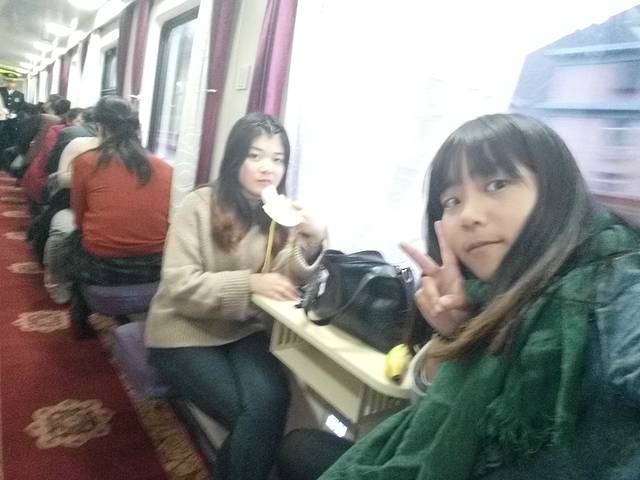 在火车上,对面坐着一群来自北京的老年人旅游团,他们都是自己组队出来玩,一路走了四川,重庆,甘肃,接下来准备进藏。真是让人佩服得不行啊!我觉得人就应该这么活,年龄不是阻碍你的借口。在聊天之前,有个老爷爷一直看着我,还不时跟他老伴儿嘀咕啥,我问基友我是不是脸上有啥奇怪的东西.....后来爷爷过来跟我说,我跟他的孙女儿简直长得太像了,以为是自己孙女儿也偷偷跑出来了,才叫他老伴儿看看是不是的~~~哈哈哈~~