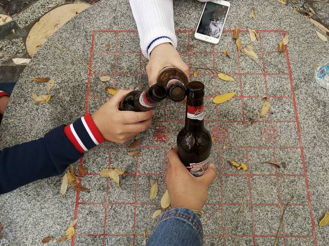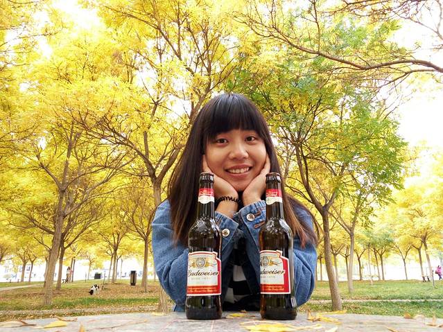 在一片美得不要不要的小树林里面,旁边的情侣们在卿卿我我,我们三个坐在这里喝酒