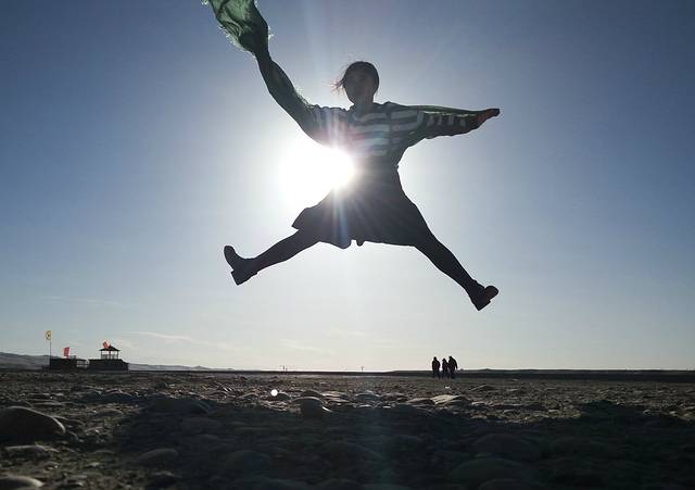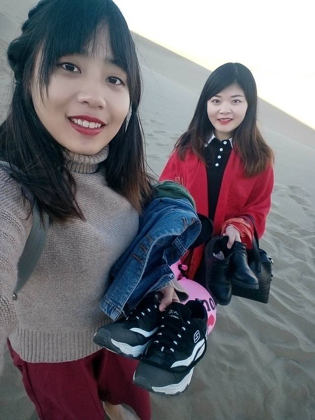 穿着鞋根本没法儿步行,走几步 脚里面全是沙子 索性直接脱了