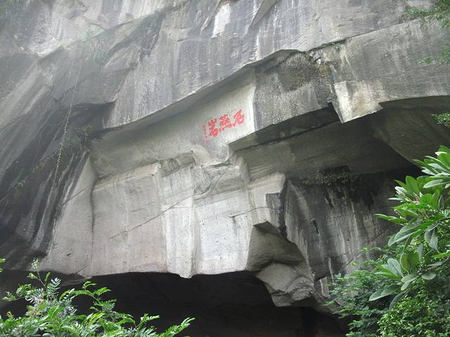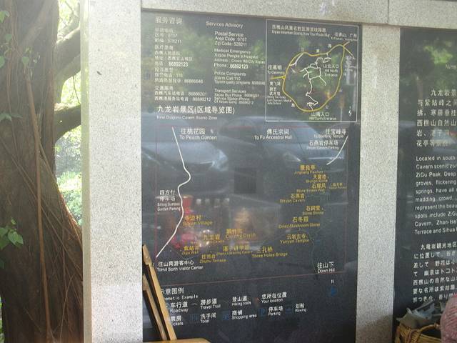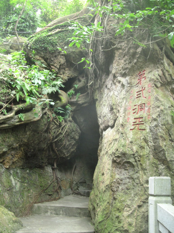 在最后一个景点石燕岩验票点这里问了工作人员,得知从验票点这里就可以下山,另外最后一场黄飞鸿武馆的表演是下午15:30,不是我一直以为的15:00,而当时时间是14:10多,所以,还来得及。赶紧去看了石燕岩,好大一个洞,还可以坐船进去,不过要额外收钱的。我没进,原路返回,然后从石燕岩验票点那里下山了。