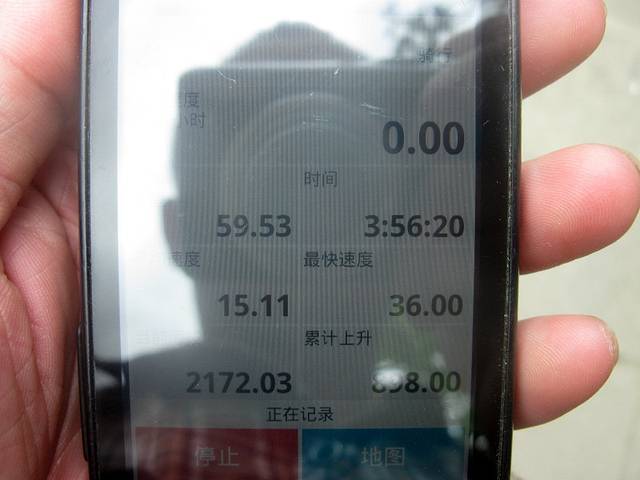 第二天骑距离:59.53km,时间3小时56分,均速15.11km/h,最快36km/h,海拔范围2050.69m-2380.69m。