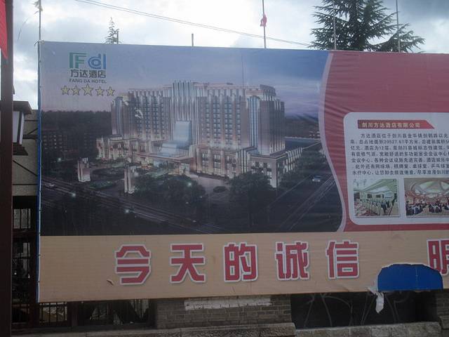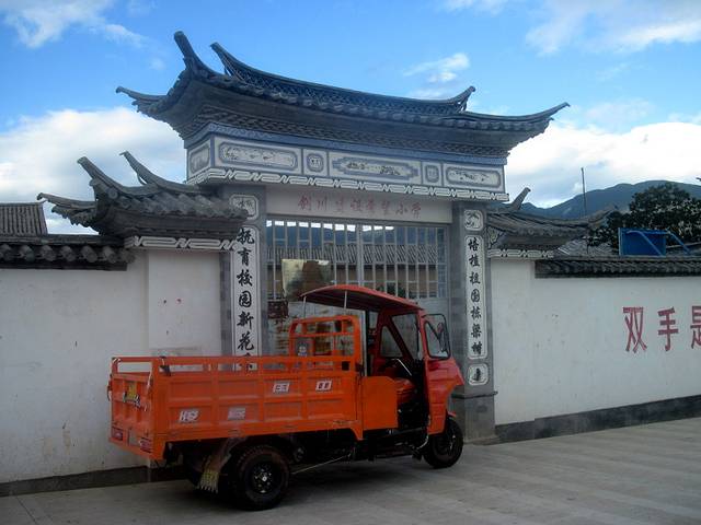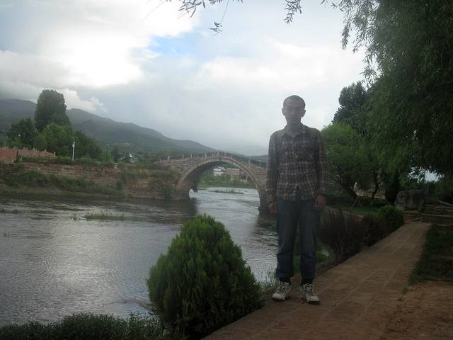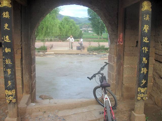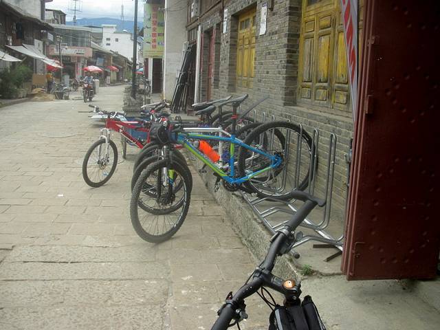 找了半天,我都想放弃了。忽然想到一招。手机上网搜剑川自由部落的微博,上面有他们剑川店的招牌的照片,上面有电话。照着打过去,是位女士接的电话,说是店已经关了!又问她知道剑川县哪里还能租到自行车吗,最后告诉我在剑川一中附近的一座拱桥边。一路问人找过去。
