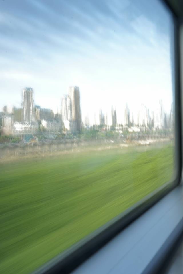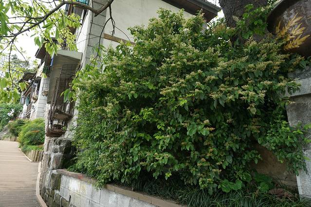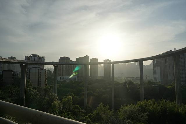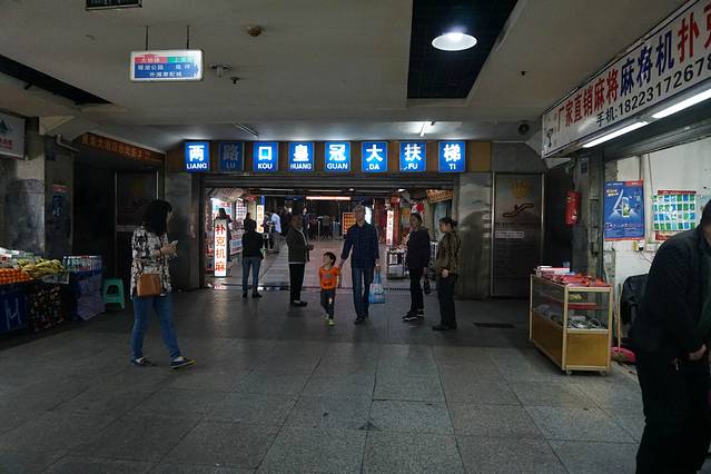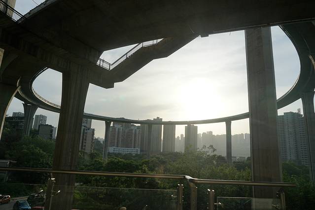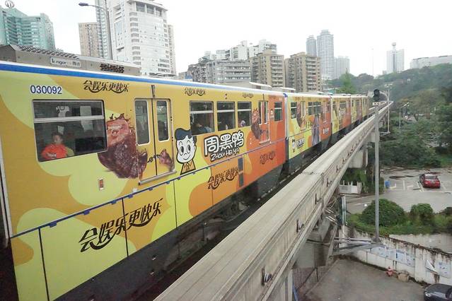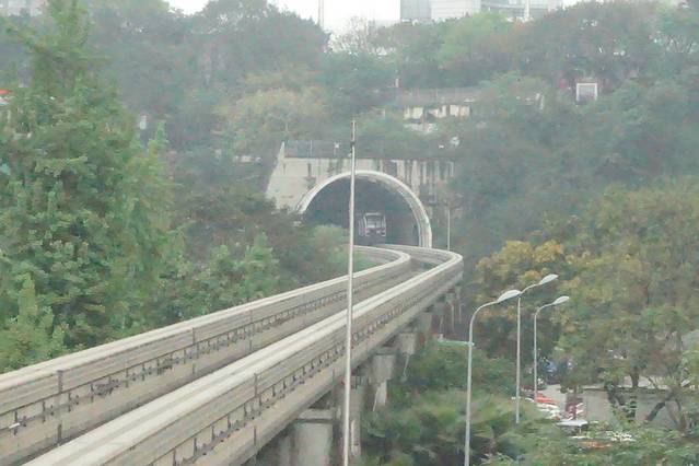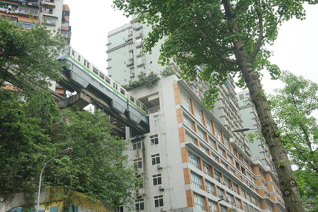 轻轨在房子里,我们提前一站下车,慢慢溜达过去