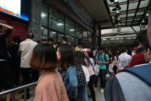 人很多,坐好排队的准备~上索道请扶好,会挤~