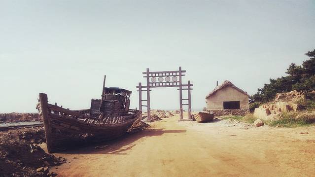 任家台海边修的小炮楼,还有茅草房,据说是去年为了拍一部抗日电视剧修的,至于是什么电视剧我就不知道了。。