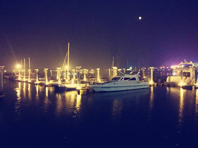 夜色下的帆船基地景色很美,冷涩的海风中带有潮湿的味道