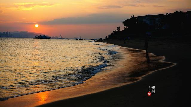 太阳将最后的余晖洒在沙滩上,拉出细细长长的倒影。海水的颜色变得愈发深沉,一阵细浪打在沙滩上,渐渐的褪去,留下的是光影的变幻与绝美。