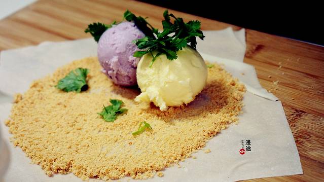在中山路附近还能找到一款花生冰激凌,用卷饼皮包裹着冰激凌,撒上满满的花生粉,店家还会问你需要不需要家香菜,这是个挺特别的创意,在甜品中加入做菜的辅料,不禁有些迟疑,但是尝试后才发现,这真是绝美的搭配,香菜的香气融合在冰激凌的柔滑之中,又解了花生粉的甜腻,一切融合的恰到好处,吃着甜品,晒着太阳,温暖的下午。