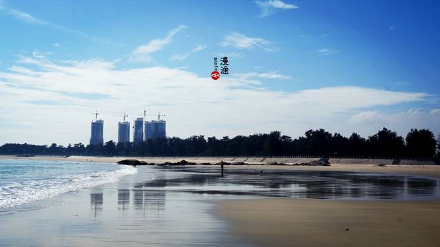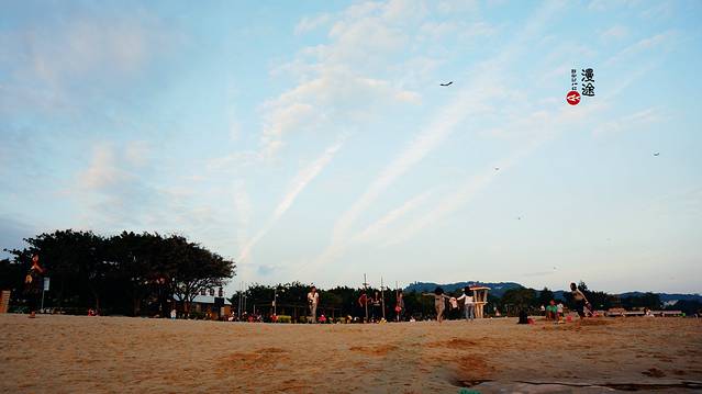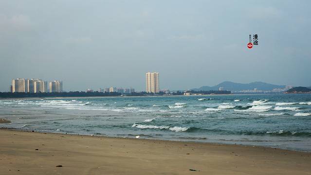 【沙滩】会展中心一带非常的清静,由于离市中心较远,所以来的人不多。从万达广场开车大约15分钟有余。兴致好的同学建议可以租自行车,沿着环岛路骑到这里,这里因为人少,所以显得更美。只是小漫他们去的那天,因为天气不好,所以整个海水还是有些泛黄,选个大晴天吧,一定不会让你失望。