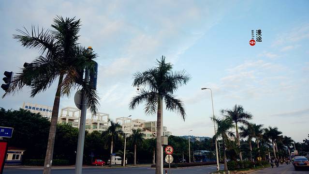 从酒店走到海边,不过15分钟左右的路程,在海边有一条环岛路,整洁而宽敞,立满着高大挺拔的椰子树,椰风林立。