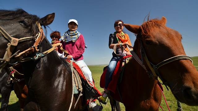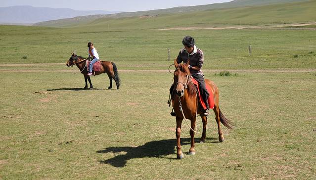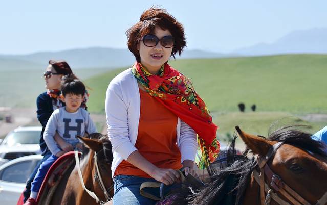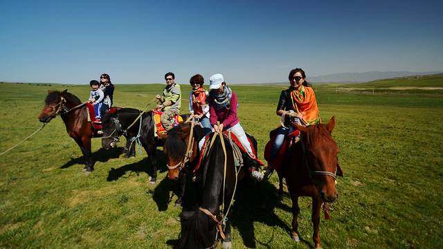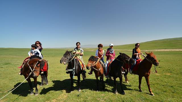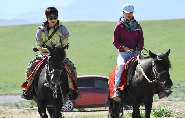 ....足足骑了几个小时,大家屁股都受不了了,下马休息,还是汽车里的皮座椅坐着习惯和舒服。