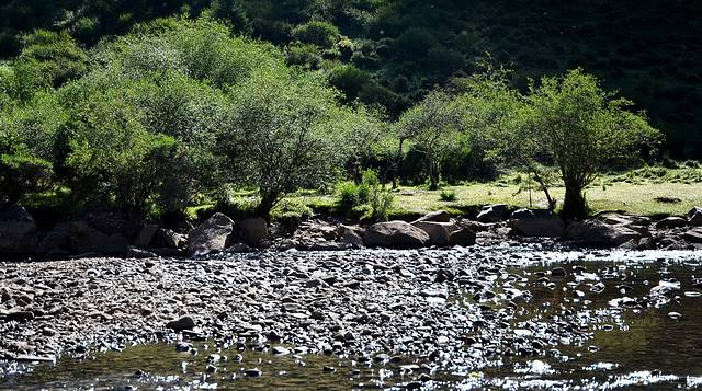 可惜小舅昨天就叮嘱我们一大早过来,那会儿呢,正好有马群放马过来饮水什么的,很壮观很排场,好看!