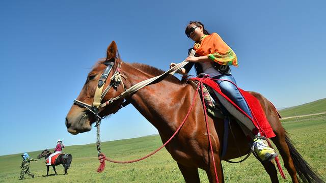 既然来到了马场,那还用说?会不会骑马的都得骑马。