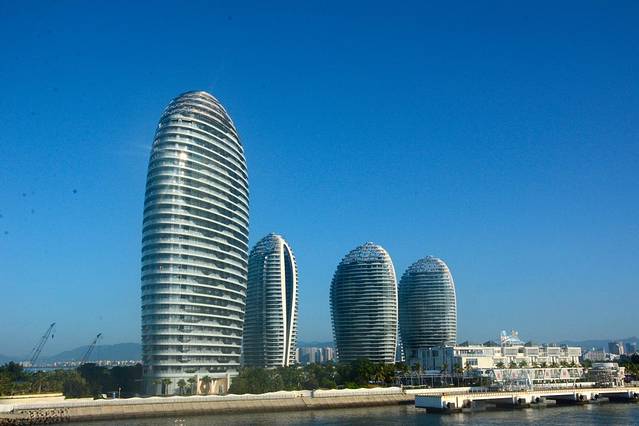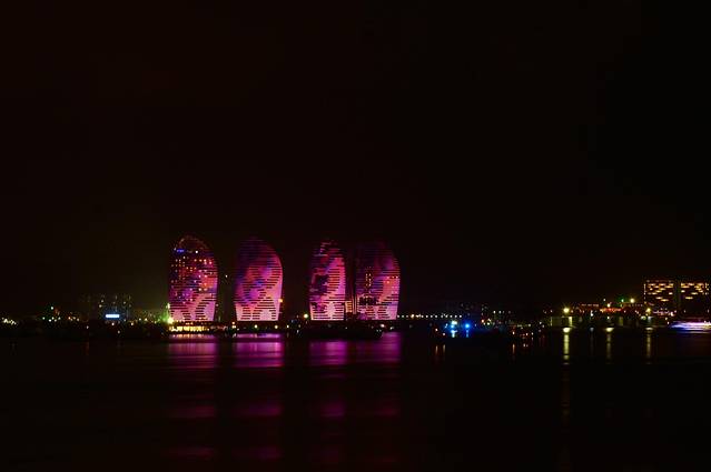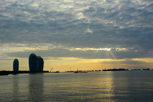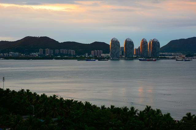临春岭公园的对面就是美丽之冠,也就是大树房子。最好在太阳快下山的时候过来,可以看到海上日落,看整座城市的华灯初上,看另一座三亚的诞生