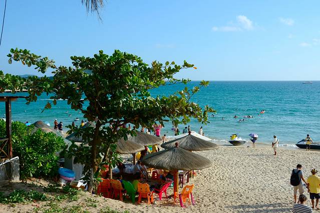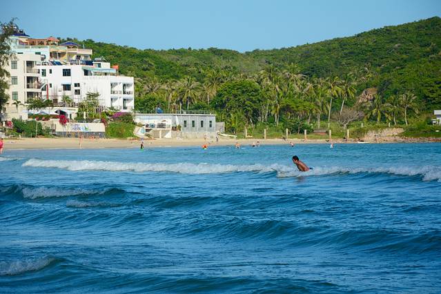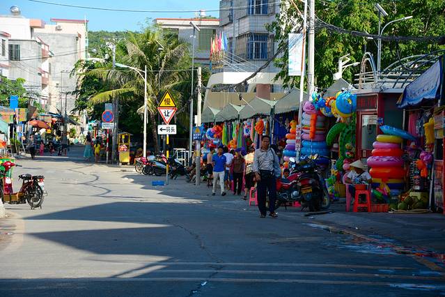 很多游人到了这里直接就在蜈支洲岛的码头坐船登岛了,然后回来后也是匆匆离开,虽然出了景区就会看到,但这个其貌不扬的小村落还是常常会被人忽略,却不知这里隐藏着三亚秘密的后花园。表面上他真的是太其貌不扬了,临街惨淡的商贩,清冷的街道,低矮的楼房……但只要从一条小巷穿过去,你会发现隐藏在村子后面的那片神秘的,活力的海岸,海水清澈见底,沙滩上游人三三两两,冲浪少年随处可见,剩下的就是安静,祥和与惬意