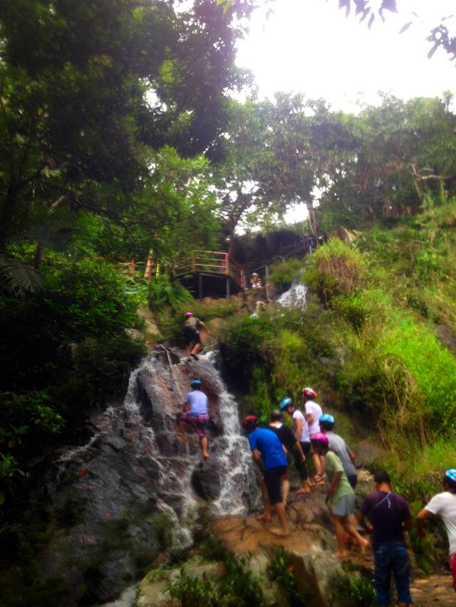 这是最后一道关卡,都在等抓着瀑布中央的绳索朔溪而上。如果身体不允许的话每道关卡旁都有一条可以顺利通关的便捷道路。