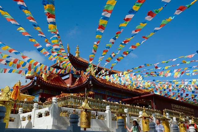 得大自在观音阁,这里供奉着世界最大的金玉佛像——金玉观世音,内镶释迦摩尼舍利子。这尊无价之宝高3.8米,由100多公斤黄金白银、200多颗南非钻石,以及红蓝宝石、珊瑚、珍珠、翡翠等奇珍异宝塑成。
