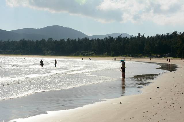 即便不下海游泳,只光着脚走在沙滩上,感受细沙钻入脚趾缝里的软绵,就会陡然升起一种幸福感。吹吹海风,望着眼前天然雕饰而成的碧海银滩,“天下第一湾”的美誉都显得有些落俗。