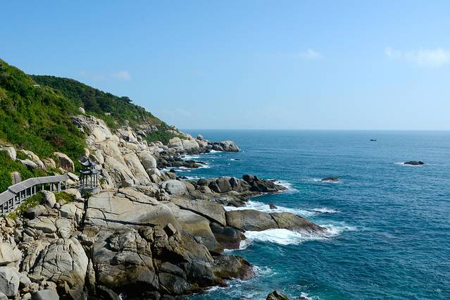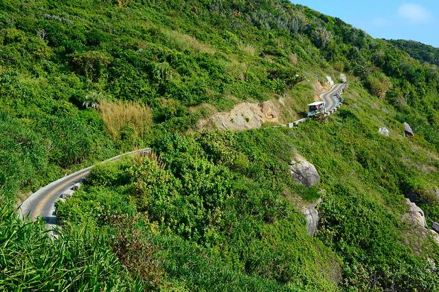 岛的东南方是只能通过乘坐电瓶车的方式前往的,价钱有三挡:80、120、150。80的全程不能下车,120的一共停靠四站:海洋之星、观日岩、妈祖庙和私人订制,150的在120的基础上多了一站情人岛。
