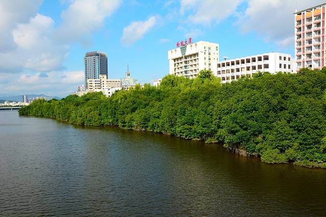 三亚河东岸被称为海岸卫士的红树林所覆盖