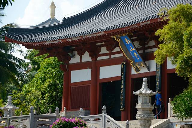 早上睡到自然醒,坐上25路公交的时候已经九点多了,大约经过1小时后到了南山景区门口,途径西岛,天涯海角景区,到的时候都已经十点多了。早饭还没吃,买票后第一件事就是找吃饭的地方,素斋是我比较中意的