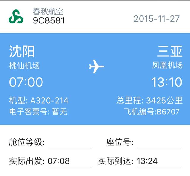 这次前往三亚去程选择的是春秋航空,9C8581,经停石家庄正定机场。选择这趟航班完全是因为他是最早的航班,也就只有坐这趟航班才能赶上下午去往西沙的船。