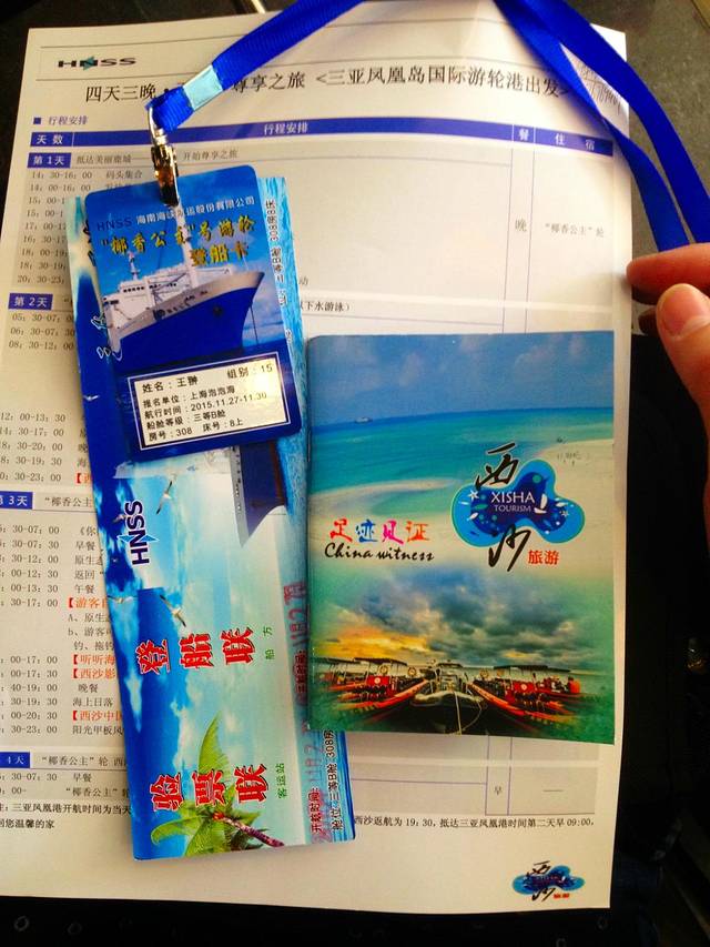 早上下了夜班就赶到机场,然后坐着机场第一班飞机飞到三亚,下午近1点半抵达三亚凤凰机场,然后叫的专车送到凤凰岛国际邮轮港,等待登船,晚上9点起航出发去西沙群岛,在船上听图解西沙和安全讲解