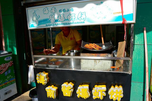 青旅楼下的酱爆虾,也非常推荐,将虾用面包裹,入油锅炸成金黄色,刷上甜辣酱,一口下去外焦里内,满口留香
