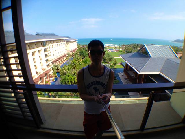 在青旅大叔请我吃过晚饭后就离开了,搬到位于蓝海花园二期里的一处公寓酒店,出门就是三亚湾,到的时候还有位阿姨出门来接我,在二楼办好手续坐电梯到十三楼,因为当时预定的不是最贵的房间,以为是位于小区内的一处普通房间,没想到是拥有这样一处无敌海景的房间,真是出乎了我的预料之外,站在屋里的阳台上就能看到凤凰岛酒店。而且这里交通也很便利,楼下就有公交车站——绿海田园小区,从这里去往西边的南山景区,天涯海角以及大小洞天都很方便