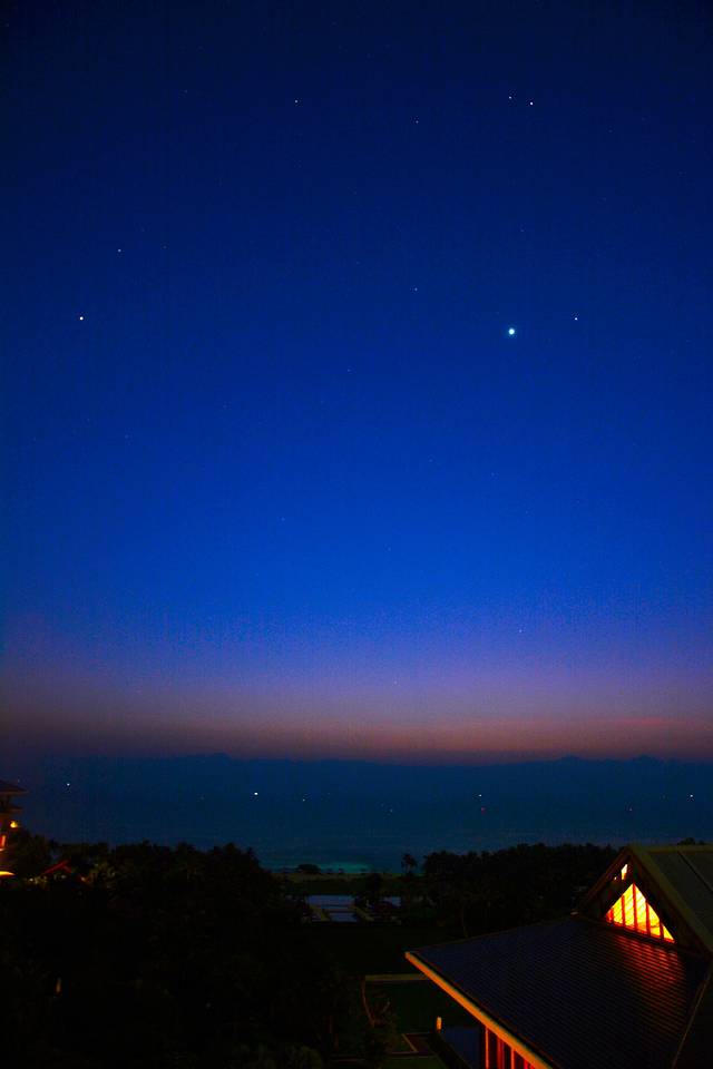 夜幕即将降临,所有人都在沙滩上,等待着一天一次的三亚湾日落美景,脑海中同时估量着等会要去那家餐厅享用今晚的美食
