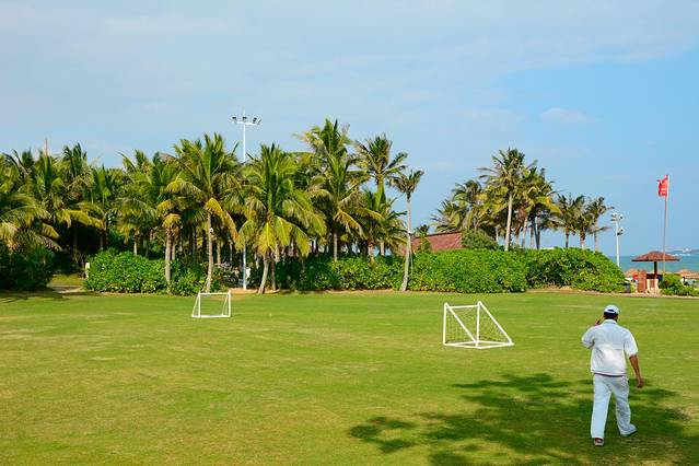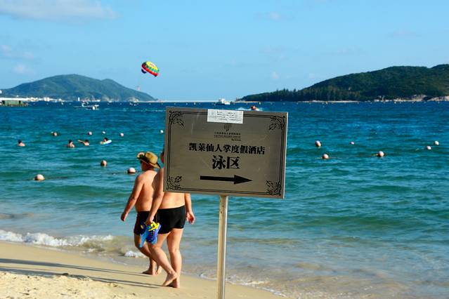 亚龙湾同海棠湾一样有着许多家星级酒店,但与海棠湾上不同的是亚龙湾一些酒店的沙滩不在酒店内,而是像照片里看到的是在亚龙湾上圈出一片沙滩,虽然是圈出来了,但是还是可以走进去的