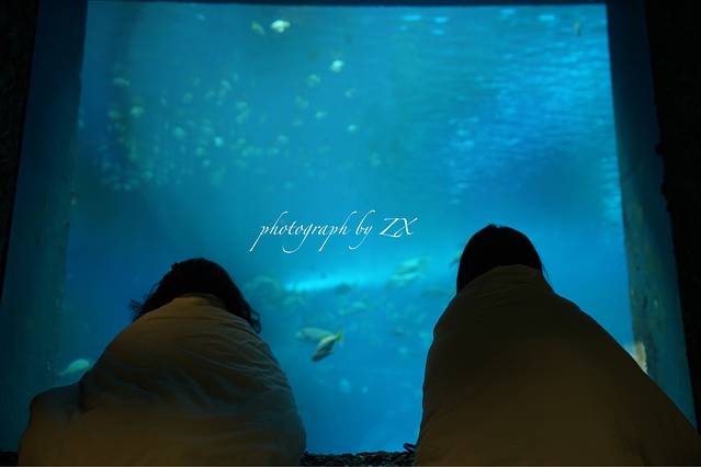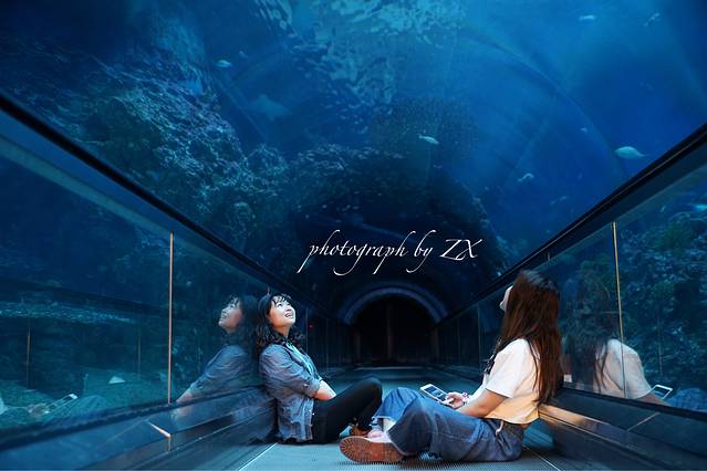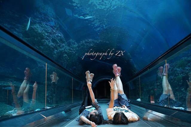 海洋馆基本都是一家人或者两个人结伴来玩,只有我自己一个人,孤独感爆棚了,幸好晚餐时就被同组的两个姐姐收留,感觉真是不要太幸福嘞,晚上一起夜探海洋馆,早上起来拍海底隧道,真的是玩的不亦乐乎,有小伙伴一起真的很好